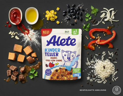 Überzeugt euch vom vollen Geschmack unserer Alete Kinderteller Spaghetti Bolognese, Risotto mit Kürbis, Chili con Carne und Ratatouille mit Couscous.