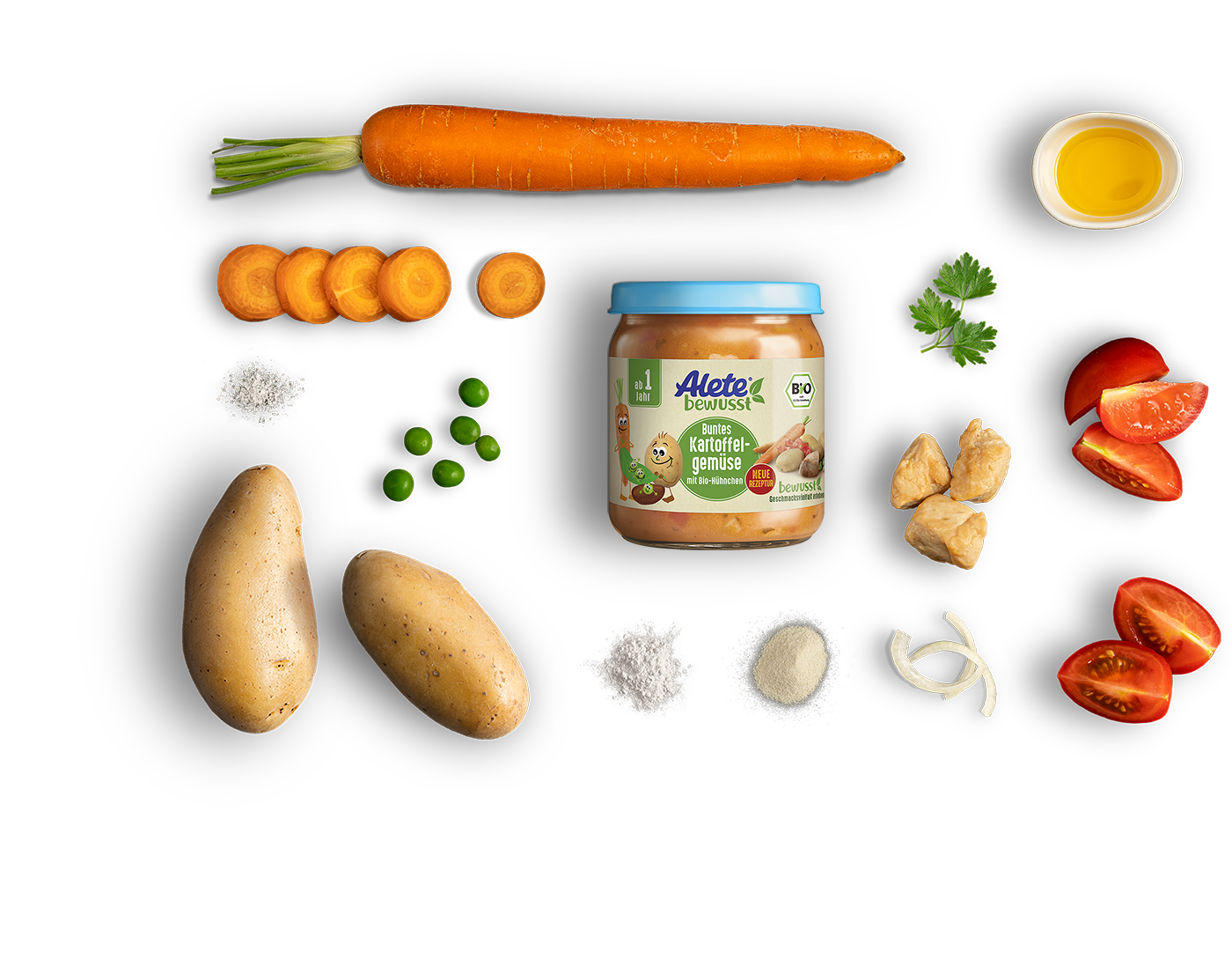 Vertraue mit Alete auf 85 Jahre Markenqualität. Wir haben unseren Sitz in Deutschland und sind eine bekannte Marke für Babynahrung. Frag doch mal Deine Eltern & Großeltern, ob sie Alete kennen.