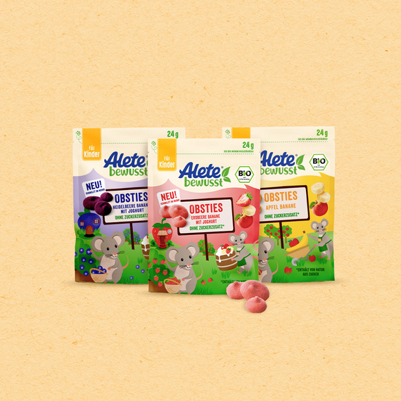 Bewusste Ernährung bedeutet auch, hin und wieder mal zu naschen. Mit den Obsties von Alete kann dein Kind fruchtig genießen, denn sie sind