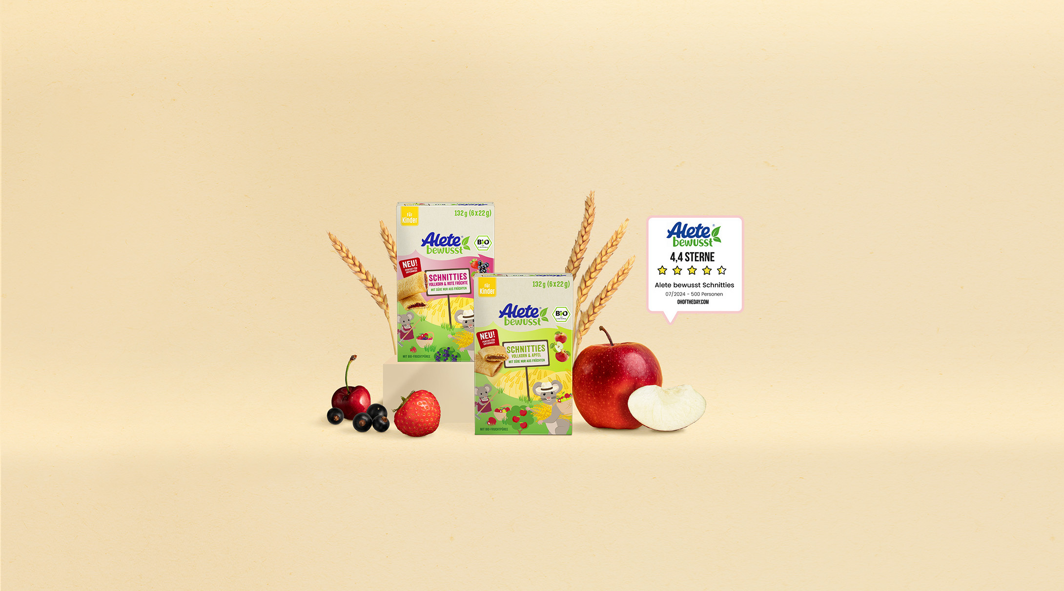 Unsere Alete Schnitties für Kinder ab 3 Jahren sind ein leckeres Gebäck aus Vollkorn mit einer Füllung aus fruchtigem Fruchtpüree - natürlich in Bio-Qualität und ohne Palmöl. Sie kommen ganz ohne Haushaltszucker aus und die Süße kommt nur aus Früchten.