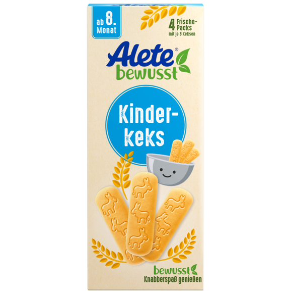Der Alete Kinderkeks enthält 1 g Zucker pro Keks. Dieser ist notwendig, um dem Keks seine besondere, mürbe Konsistenz zu verleihen. Nur so löst sich der Keks im Mund gut auf und Dein Baby verschluckt sich nicht so leicht. Achte bitte dennoch besonders gut auf Dein Baby. Kekse grundsätzlich nicht im Liegen geben und beaufsichtige Dein Baby, wenn es einen Keks isst, damit das Knabbern lernen mit den ersten Zähnchen sicher gelingt.